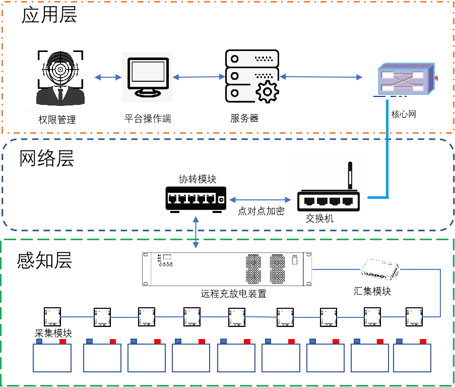 1、電池監測??椋?、匯集??椋?、充放電主機;4、智能顯示終端