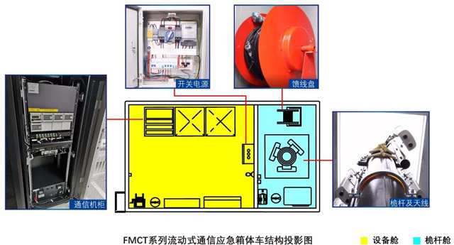 FMCT系列流動式通信箱體車靈活機動,可快速到達指定區(qū)域,實現(xiàn)快速開站,即時投運,解決傳統(tǒng)基站建設(shè)投入大、耗時長,無法滿足快速建站需要的問題。