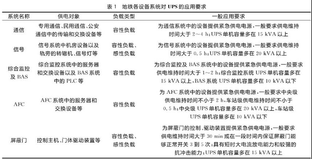 (地鐵各系統對UPS應用的要求)