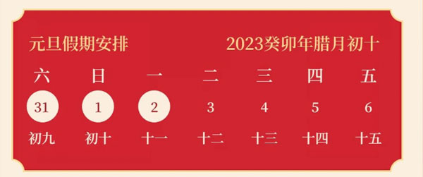 根據(jù)國家法定假期的規(guī)定,結(jié)合我司實際情況,就2023年元旦放假安排通知如下: