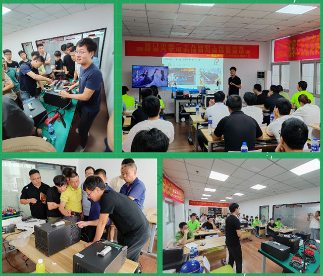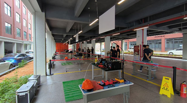PA電子團隊賽前積極為大賽籌措比賽設備,提供了均衡維護設備、充放電測試設備、氣密性測試設備,等動力電池檢測設備及系列工具,并為學員進行安裝、檢測、調試,全力配合競賽準備工作有序進行。