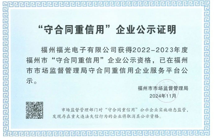 以信為先 | PA電子官網連續二十三年獲得“福州市守合同重信用企業”稱號