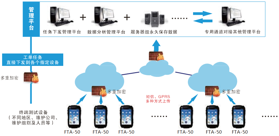 ● 支持多通道上傳(GPRS\WIFI),下發(fā)測試任務(wù)