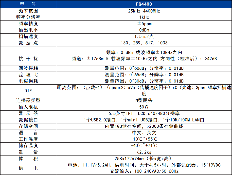 FG4400天饋線測試儀是一款手持式觸屏操控的高性能天線、饋線和電纜測試儀器。用于工程現(xiàn)場測量'回波損耗"、"駐波比”、“電纜損耗”、“故障定位”、“反射相位”和“史密斯圖” 等,使得PA電子能夠精準的快速評估饋線和天線系統(tǒng)的狀況,提高基站安裝、調(diào)試效率。