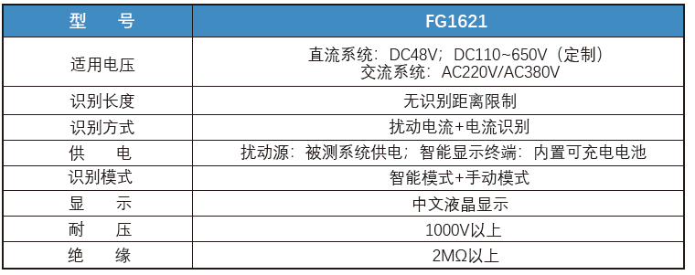FG1621可實現帶電線纜快速識別,100%準確率。適用于通信機房40V~600V各電壓等級直流系統、電力220V~380V系統,解放維護人員的排查壓力,避免發生由于線纜排查錯誤引發的機房割接事故,是電纜割接必備之選。