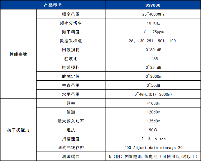 DS9000天饋線測(cè)試儀測(cè)試頻率范圍為5~4000兆赫茲,主要用于各種通信基站天饋線系統(tǒng)的測(cè)試。包括集群、GSM、PCS/DCS、CDMA、GPRS、WCDMA、CDMA2000、TD-SCDMA、LTE及尋呼系統(tǒng)等,能快速評(píng)估傳輸線和天線系統(tǒng)的狀況,提高運(yùn)行基站的維護(hù)效率,并且加快新基站所需要的安裝調(diào)試時(shí)間。