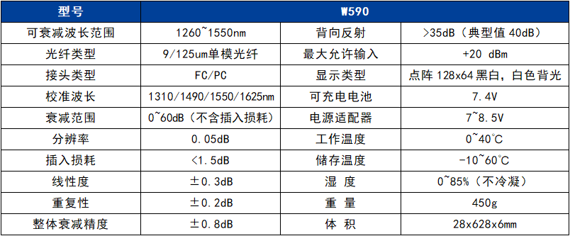 W590手持式數(shù)顯可變光衰減器采用一個(gè)中性的密度濾波器對(duì)光信號(hào)進(jìn)行衰減。通過(guò)旋轉(zhuǎn)儀表前面板上的旋轉(zhuǎn)撥盤(pán),可在2.5到60dB之間連續(xù)調(diào)整衰減值。該儀表是在光纖通信系統(tǒng)中模擬一段光纖線路上衰減的理想工具,它還可以用于系統(tǒng)驗(yàn)證測(cè)試:例如在“接收機(jī)靈敏度”測(cè)試過(guò)程中,需要進(jìn)行連續(xù)、定量的衰減調(diào)節(jié)。