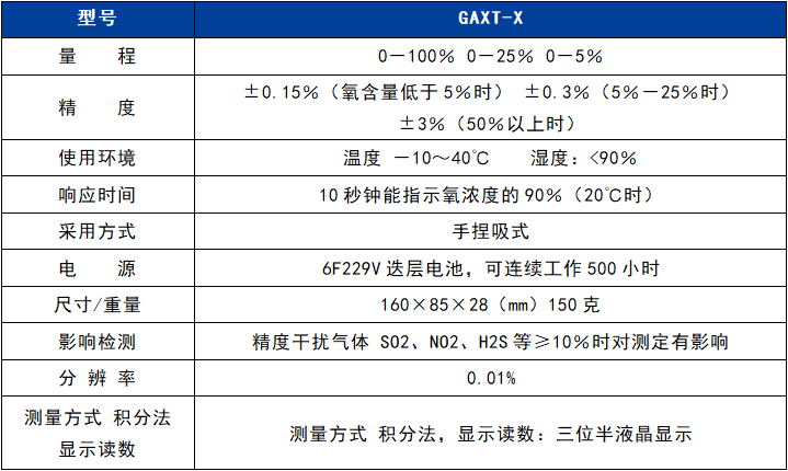 GAXT-X 能對工礦企業環境、船艙、坑道、化工、化肥工業氣體中的氧含量進行測定,對避免生產過程由于過氧而發生的系統爆炸、及防止檢修人員在缺氧環境中發生窒息事故是很有效的,還可以對內燃機排氣中氧含量及煙道氣中氧含量進行檢測,以達到合理控制燃燒及節約燃料的目的。