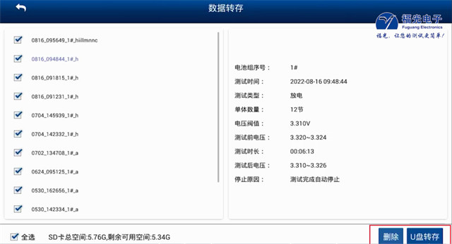 測試過程中數據會自動保存到儀表內部,支持測試歷史數據查看、刪除、U盤導出